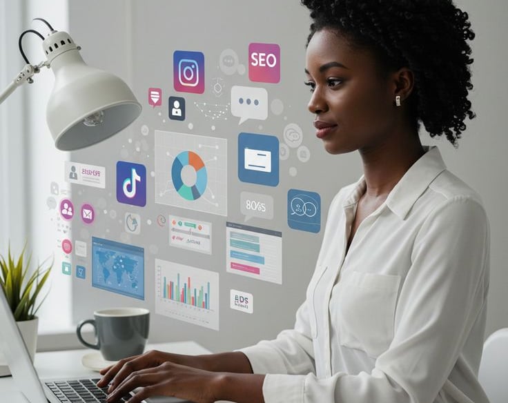 Campagnes Facebook Ads, Google Ads et TikTok Ads pour booster votre visibilité et vos ventes.